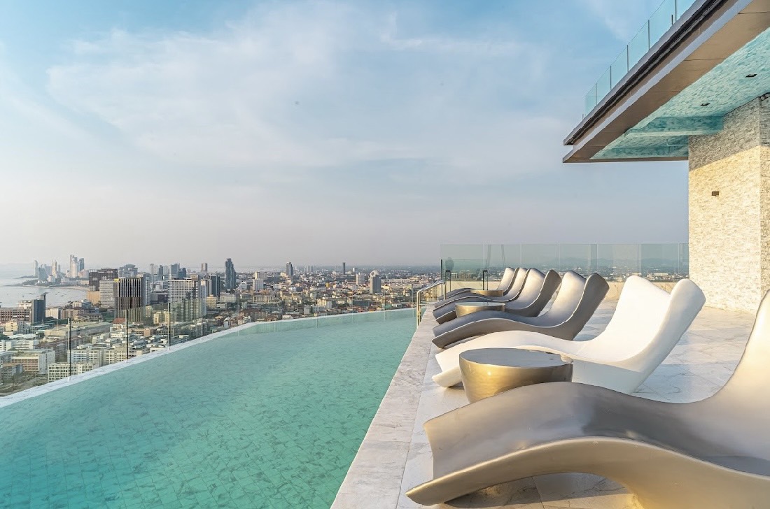 A highlight of this project is the Sky Pool, which comes with a surrounding lounge area, allowing residents to enjoy swimming or relaxing in the cool breeze while taking in stunning panoramic views of the ocean. Additionally, the condominium offers other facilities such as a modern fitness center and a rooftop restaurant and bar, perfectly blending luxury and convenience in the heart of Pattaya!